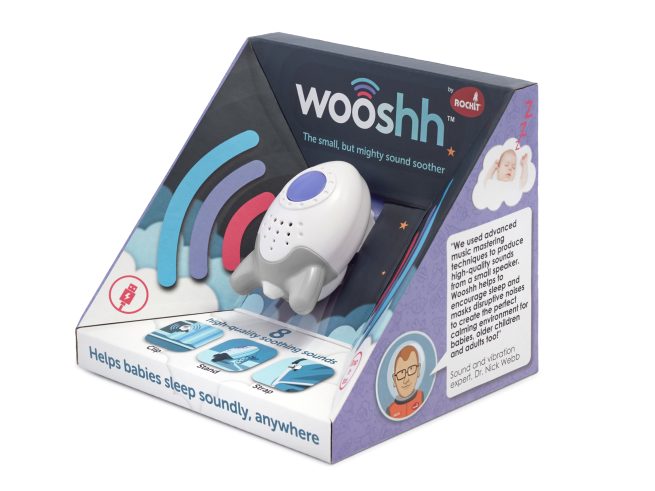 Le Whoosh est un générateur de bruit blanc conçu pour aider bébé à s’endormir plus facilement et à rester endormi plus longtemps.